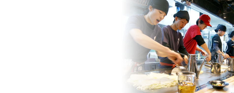 自慢の焼き手が素材の旨味を十分に引き出し、一切の妥協を許さない味でお客様のお越しをお待ちしております。当店自慢のお好み焼は、何年もの間試行錯誤を繰り返し他店にはないおいしい焼き方に辿り着きました。是非ご賞味ください。